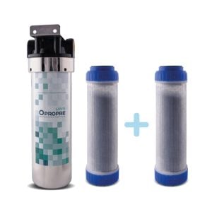 Le système de préfiltration OPROPRE élimine 99,9% des polluants éternels naturellement présents dans l'eau du robinet.
